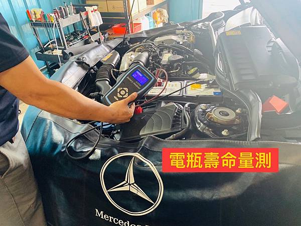 上圖為維修技師量測電瓶壽命,這是保養項目的檢查之一