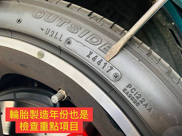上圖為維修技師會幫入廠的車主檢查輪胎的製造年份、胎紋深度