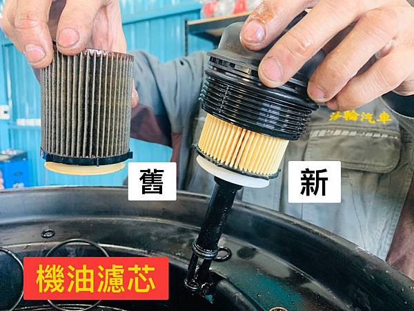 上圖左為維修技師拆下來舊的機油濾芯,右為更換後新的機油濾芯