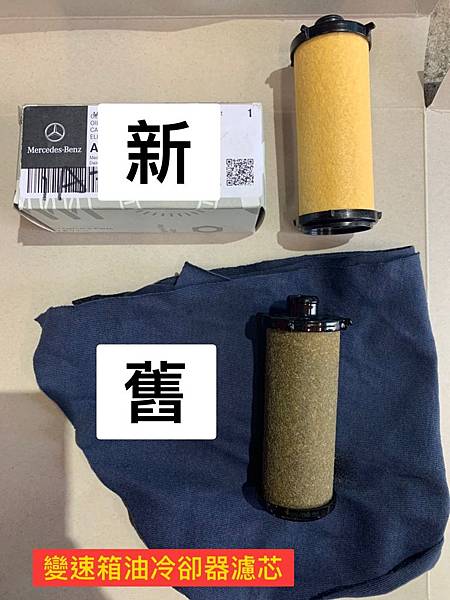 變速箱油冷卻器的濾芯也是需要做更換的喔! 看看上圖的新舊品比對