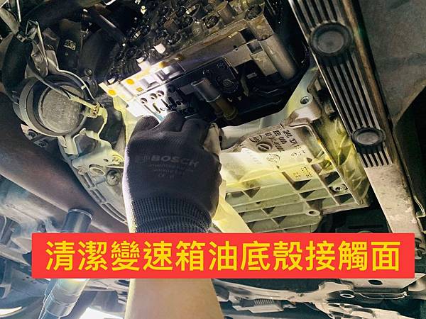上圖為變速箱油底殼卸下後必須清潔油底殼接觸面,如果接觸面有油漬殘留,可能會造成變速箱油滲漏。