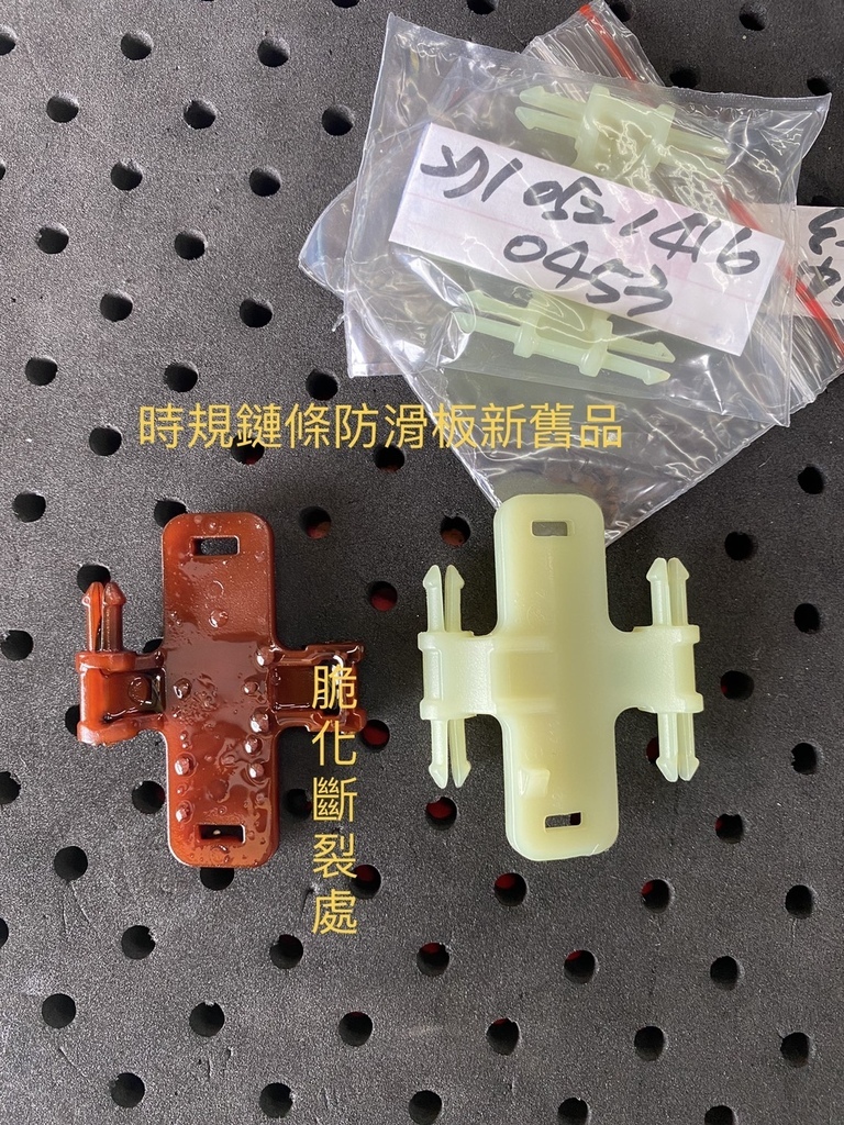 舊的時規鏈條防滑板有出現脆化斷裂,在更換前來看看時規鏈條防滑板新舊品比較