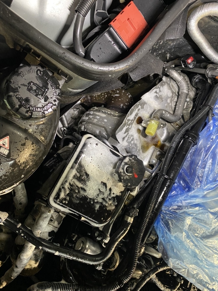 這次賓士 E200維修發現幾個問題,氣門蓋墊片漏油導致點火線圈浸泡機油。